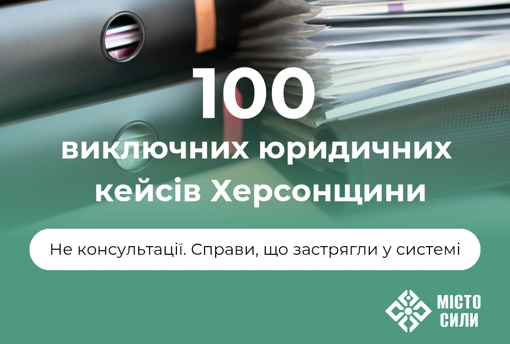 100 пілотних кейсів: ГО «Місто Сили» розпочинає юридичний супровід складних справ у Херсонській області