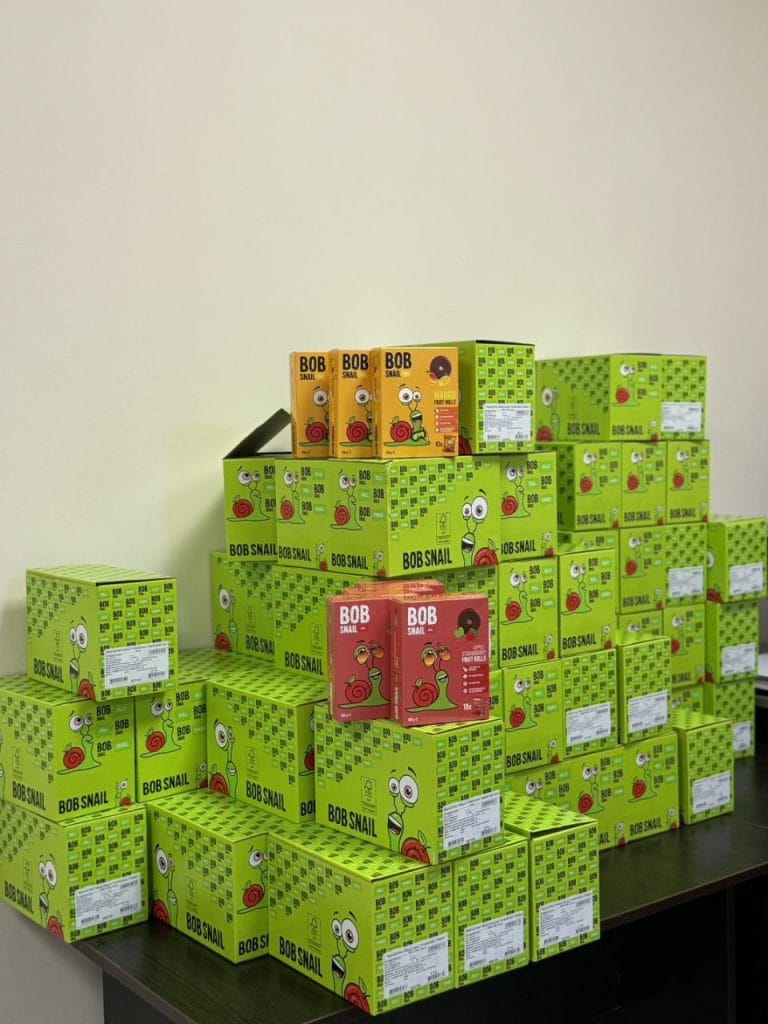 Так, величезний вантаж, 70 коробок зі смаколиками, волонтери ГО «Місто Сили» зустріли з м. Гайворон Кіровоградської області. Таке чудове привітання херсонським дітям передав колектив мережі магазинів «Файно маркет». Ще одні благодійники надіслали палету із фруктовими цукерками.