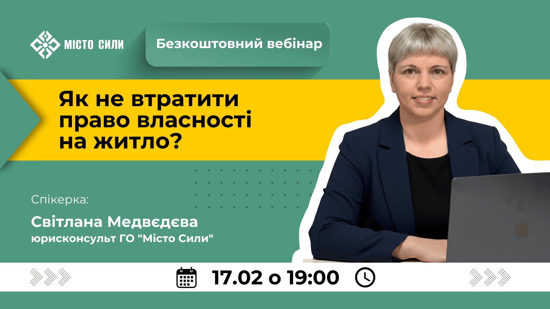 17 лютого 2026 року о 19-00 Громадська організація “Місто Сили” запрошує на безкоштовний вебінар на тему “Як не втратити право власності на житло?”. Захід буде