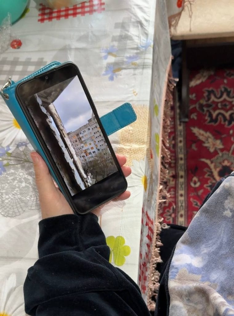 Пані Марія з Херсона показує в телефоні відео будинку, в якому вона прожила 50 років. Пригадує, як раділа, коли отримала квартиру на одній із центральних вулиць міста з виглядом на Дніпро. Тепер же район, де розташована ця багатоповерхівка, відноситься до «червоної зони». Він цілодобово перебуває під обстрілами. Більшість будинків тут зруйновані. Критичних пошкоджень зазнала і квартира літньої жінки.