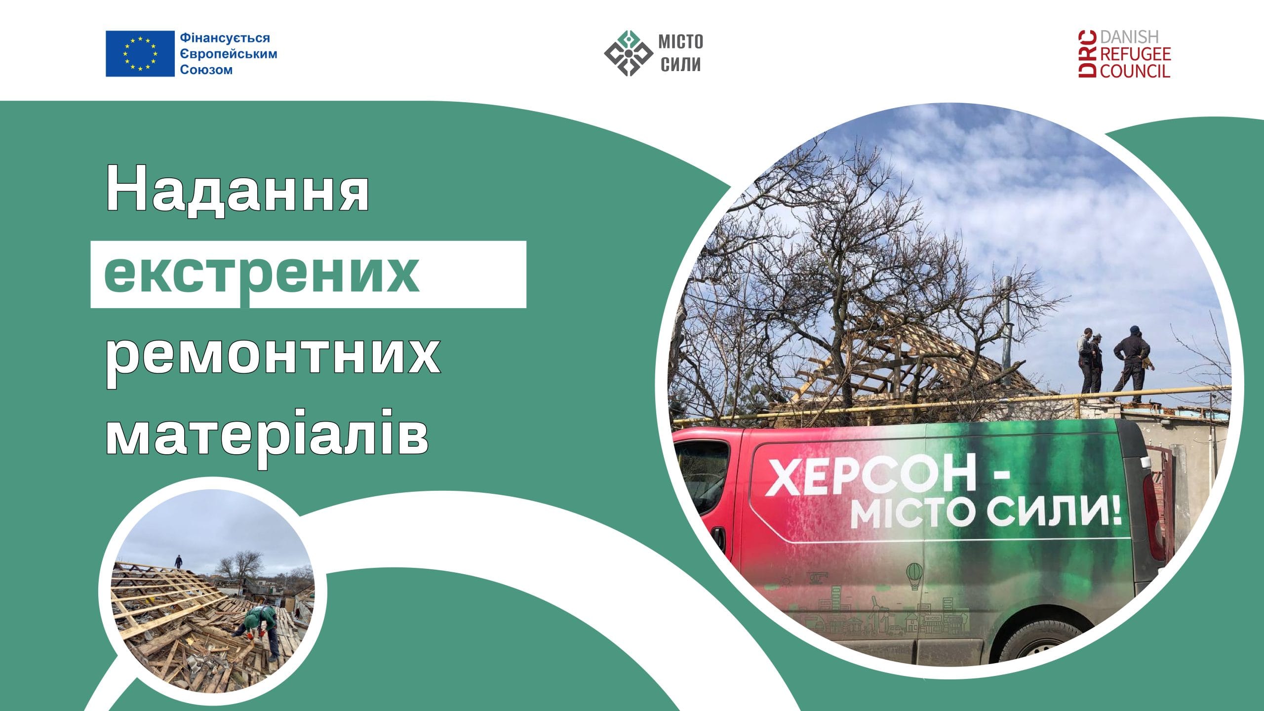 З літа 2023 року ГО «Місто Сили» відновлює оселі жителів Херсонської громади, які постраждали внаслідок війни. Спочатку мобільні бригади викачували воду із будівель, підвалів, вулиць,